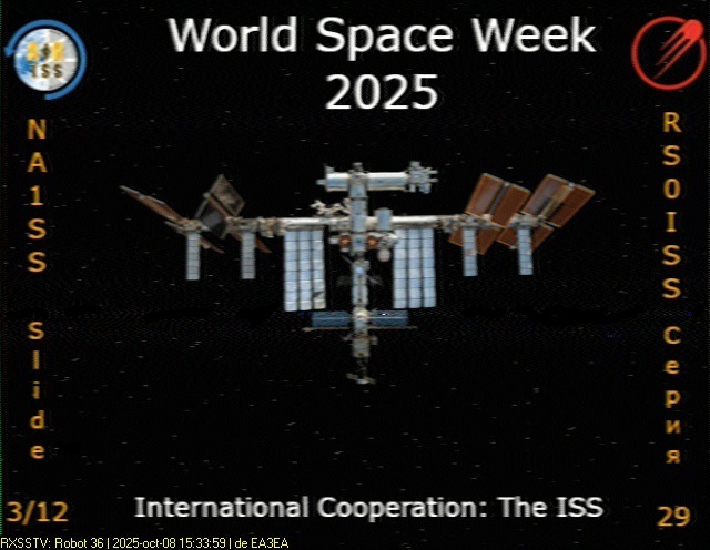 | Submitted by: Jaume Torres, EA3EA, Europe Acquired: 2025-10-08 09:59:00 Mission: Expedition 73 - ARISS Series 29 World Space Week 2025 |  | Submitted by: MICKE, F4HZR, Europe Acquired: 2025-10-08 11:36:00 Mission: Expedition 73 - ARISS Series 29 World Space Week 2025 |  | Submitted by: Charlie Foord, M7RFU, Europe Acquired: 2025-10-04 13:16:00 Mission: Expedition 73 - ARISS Series 29 World Space Week 2025 |