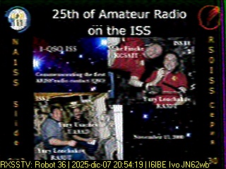 | Submitted by: Riky, IU4APB, Europe Acquired: 2025-12-07 20:59:00 Mission: RS-38S - ARISS Series 30 25th Anniversary/Scouting |  | Submitted by: Riky, IU4APB, Europe Acquired: 2025-12-07 20:56:00 Mission: RS-38S - ARISS Series 30 25th Anniversary/Scouting |  | Submitted by: Riky, IU4APB, Europe Acquired: 2025-12-07 20:54:00 Mission: RS-38S - ARISS Series 30 25th Anniversary/Scouting |