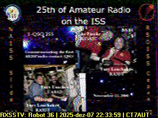 | Submitted by: Klaus, SWL, Europe Acquired: 2025-12-07 20:57:00 Mission: RS-38S - ARISS Series 30 25th Anniversary/Scouting |  | Submitted by: Florian Wolters, DF2ET, Select a region Acquired: 2025-12-07 20:56:00 Mission: RS-38S - ARISS Series 30 25th Anniversary/Scouting |  | Submitted by: Florian Wolters, DF2ET, Select a region Acquired: 2025-12-07 20:59:00 Mission: RS-38S - ARISS Series 30 25th Anniversary/Scouting |