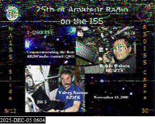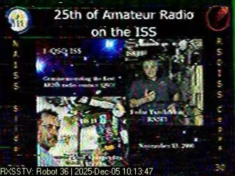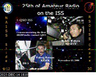 | Submitted by: Lei Zhang, BG0ATV, Asia Acquired: 2025-10-06 05:18:00 Mission: Expedition 73 - ARISS Series 29 World Space Week 2025 |  | Submitted by: Stefano Conficoni, IK5SRU, Europe Acquired: 2025-12-08 20:28:00 Mission: RS-38S - ARISS Series 30 25th Anniversary/Scouting |  | Submitted by: Umberto Accardo, IW5EBY, Europe Acquired: 2025-12-08 20:27:00 Mission: RS-38S - ARISS Series 30 25th Anniversary/Scouting |
