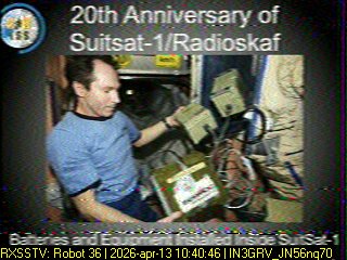 | Submitted by: Diego ABRAM, IN3GRV, Europe Acquired: 2026-04-13 10:40:00 Mission: Expedition 74 - ARISS Series 31 World Space Commemoration |  | Submitted by: Diego ABRAM, IN3GRV, Europe Acquired: 2026-04-13 07:26:00 Mission: Expedition 74 - ARISS Series 31 World Space Commemoration |  | Submitted by: Diego ABRAM, IN3GRV, Europe Acquired: 2026-04-12 11:29:00 Mission: Expedition 74 - ARISS Series 31 World Space Commemoration |