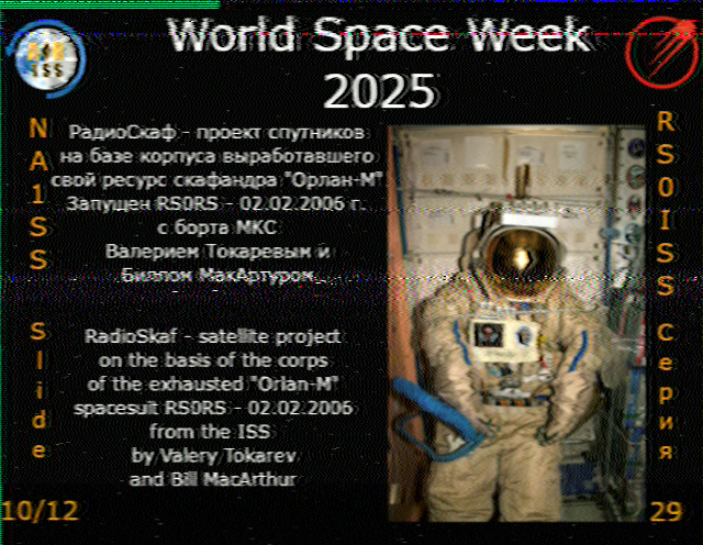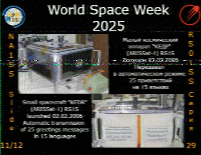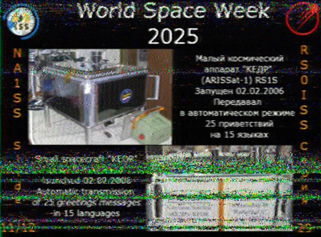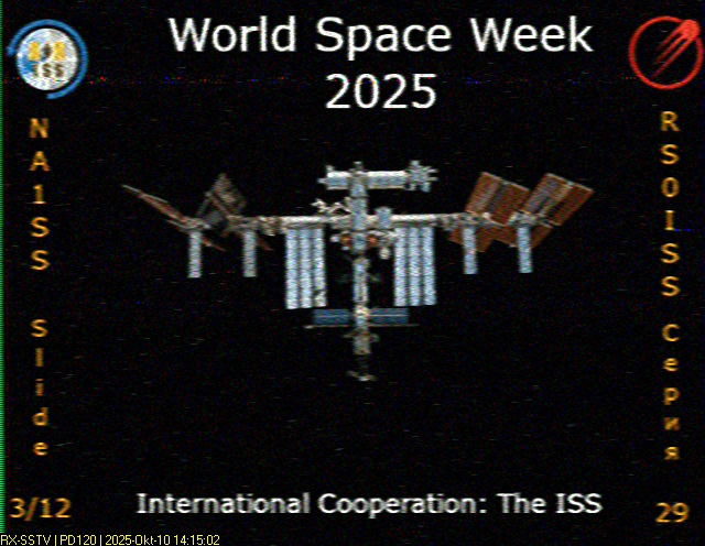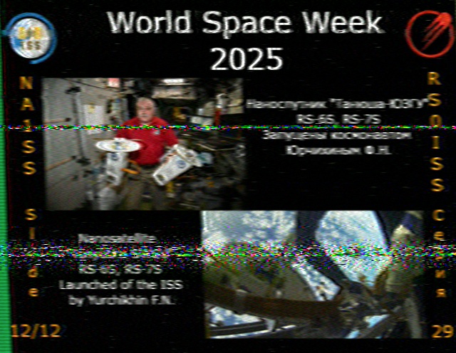 | Submitted by: Brady Seitz, NorthAmerica Acquired: 2025-10-08 15:24:00 Mission: Expedition 73 - ARISS Series 29 World Space Week 2025 |  | Submitted by: Brady Seìtz, NorthAmerica Acquired: 2025-10-08 16:57:00 Mission: Expedition 73 - ARISS Series 29 World Space Week 2025 |  | Submitted by: Sergei Lukyanenko , Europe Acquired: 2025-10-08 16:07:00 Mission: Expedition 73 - ARISS Series 29 World Space Week 2025 |