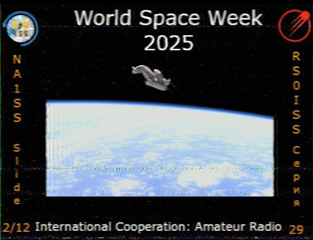 | Acquired: 2025-09-10 00:07:00 Mission: Expedition 73 - ARISS Series 29 World Space Week 2025 |  | Submitted by: Bärbel Fink, Europe Acquired: 2025-10-04 09:51:00 Mission: Expedition 73 - ARISS Series 29 World Space Week 2025 |  | Submitted by: Alfredo Peláez Flores , NorthAmerica Acquired: 2025-10-03 23:23:00 Mission: Expedition 73 - ARISS Series 29 World Space Week 2025 |