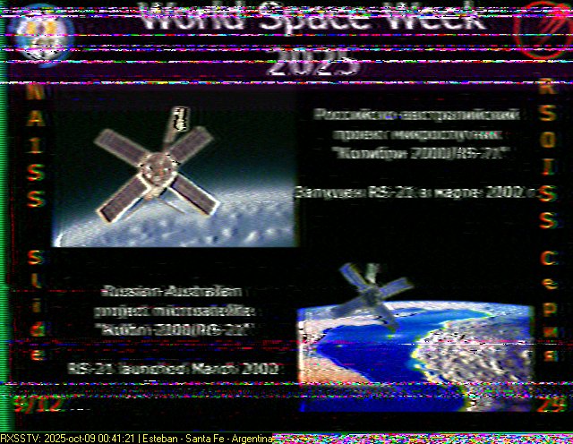 | Submitted by: Esteban Loretan, SouthAmerica Acquired: 2025-10-08 01:41:00 Mission: Expedition 73 - ARISS Series 29 World Space Week 2025 |  | Submitted by: Esteban Loretan, SouthAmerica Acquired: 2025-10-09 00:49:00 Mission: Expedition 73 - ARISS Series 29 World Space Week 2025 |  | Submitted by: Esteban Loretan, SouthAmerica Acquired: 2025-10-09 00:41:00 Mission: Expedition 73 - ARISS Series 29 World Space Week 2025 |